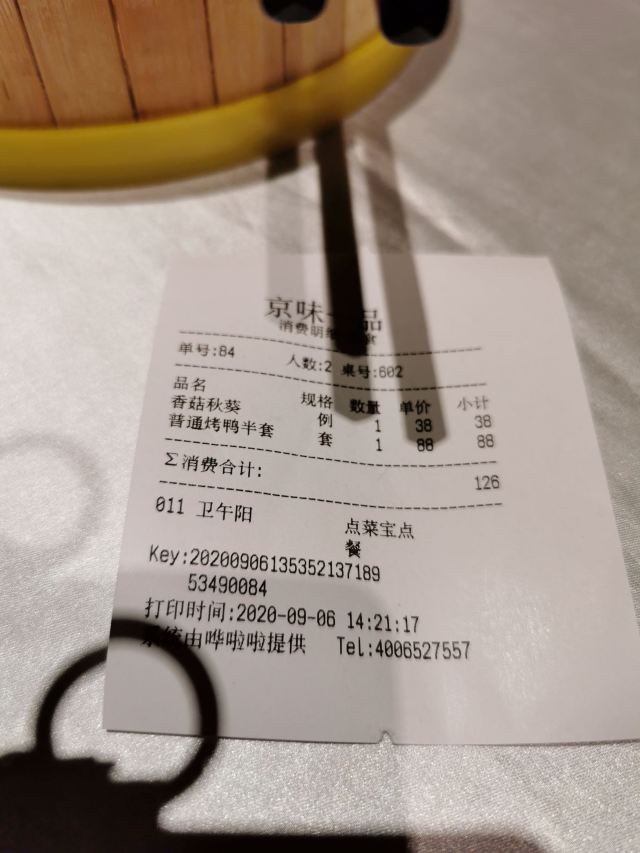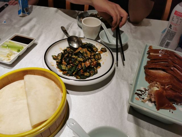 20200906 上午动物园溜达一圈,到下午一点多才回大本营,家门口的“京味一品”吃点儿家常菜吧,没多少人了,员工也开始吃饭,休息,点了半套烤鸭,一份香菇秋葵,很快上菜,烤鸭还不错,皮脆不腻,香菇有点儿咸。这里在疫情期间又重新装修了,老北京风情吗?有点儿意思吧,哈哈😄
