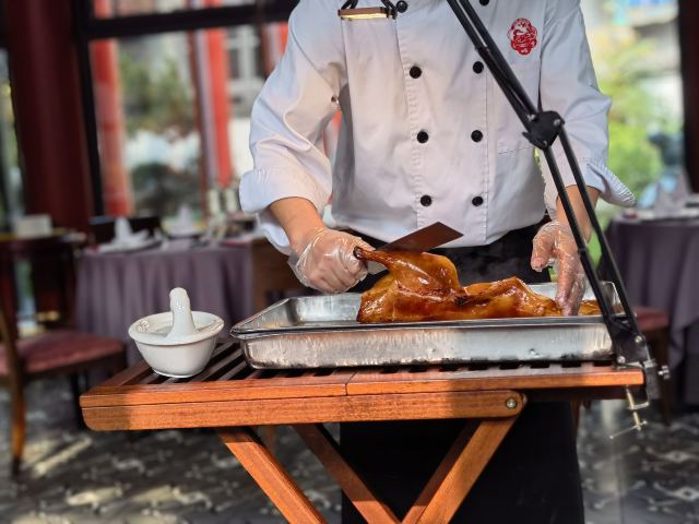 闻名京城的烤鸭店,位于传统四合院之中,内有众多形态各异的雕塑,令人有误入博物馆之感。内部采用典雅气派的新中式装修,细节设计颇具巧思。招牌烤鸭皮酥肉嫩,以生长超过40年的果木挂炉烤制,使食客体验到独特滋味。