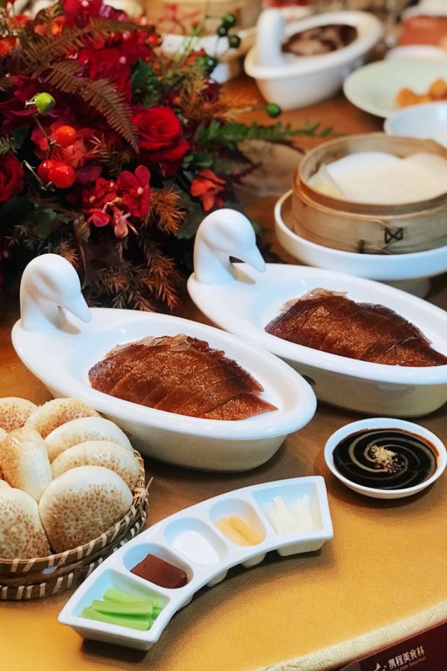 北京烤鸭,碧绿炒元贝,三杯鸡,宫保鸡丁,芝麻饼,清炒豆苗,清蒸笋壳鱼,大厨红烧肉,笋尖鲜虾饺,话梅南瓜,招牌黑胡椒波士顿龙虾,香椿鲜核桃仁,芥末鸭掌,上海熏鱼,杏鲍菇炒牛肉粒,黑松露菌菇水晶饺,一品黄焖鱼翅,驴打滚,乾隆白菜