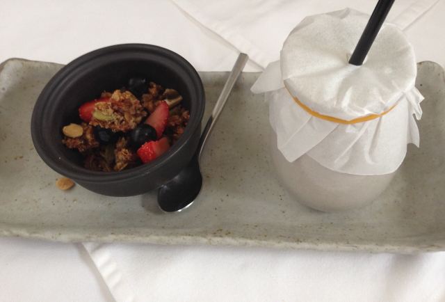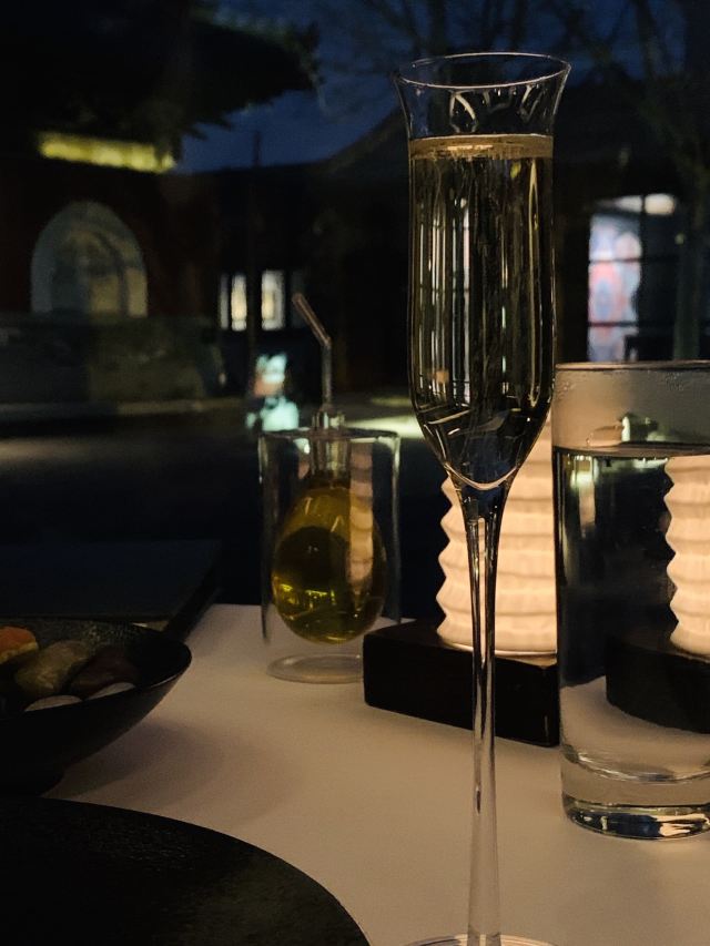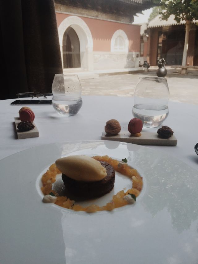 枫行Maple开在东景缘内,环境与氛围是这家餐厅的一大亮点。作为京城胡同里最早一批Fine dining,在古建中,融合了现代风格,个人认为比摩天大楼内的豪华餐厅更有味道。 腊月的北京是萧瑟的,古寺的气场是清幽的,落地窗映入眼帘的却有冬日难得的阳光,与寺庙大门那正宗的帝都红。 💁服务 收取服务费的餐厅也吃了不少,TRB Hutong可以说是其中难得物有所值的一家。 与印象中fine dining餐厅逼格高高在上的调性不同,TRB的服务弹性非常大,我们的负责人Kyle的反应也相当快。无意中提到有一位朋友马上要过生日,转眼就端上了赠送的红心蛋糕。我们没有点佐餐的酒水,但全程送了我们两款好喝的酒搭配主菜与甜品。