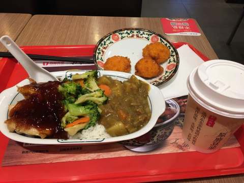 宫保鸡丁饭,咖喱牛肉饭,照烧鸡排饭,干烧水煮鱼饭,海苔鸡肉串,南瓜粥,台式卤肉盖饭,经典鱼香肉丝饭,藕合,蔬菜沙拉,咖喱猪排饭,美味海带丝,和风牛肉饭,柠香翅根,秘制南瓜羹,红烧南极冰鱼饭,海苔鸡串