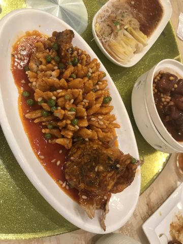 金牌烤鸭,烤鸭,梨香酥皮虾,披萨宫保鸡丁,金鸭梨,海鲜毛血旺,铜壶吊梨汤,沸腾水煮鱼,蓝莓山药,精美果盘