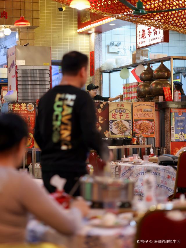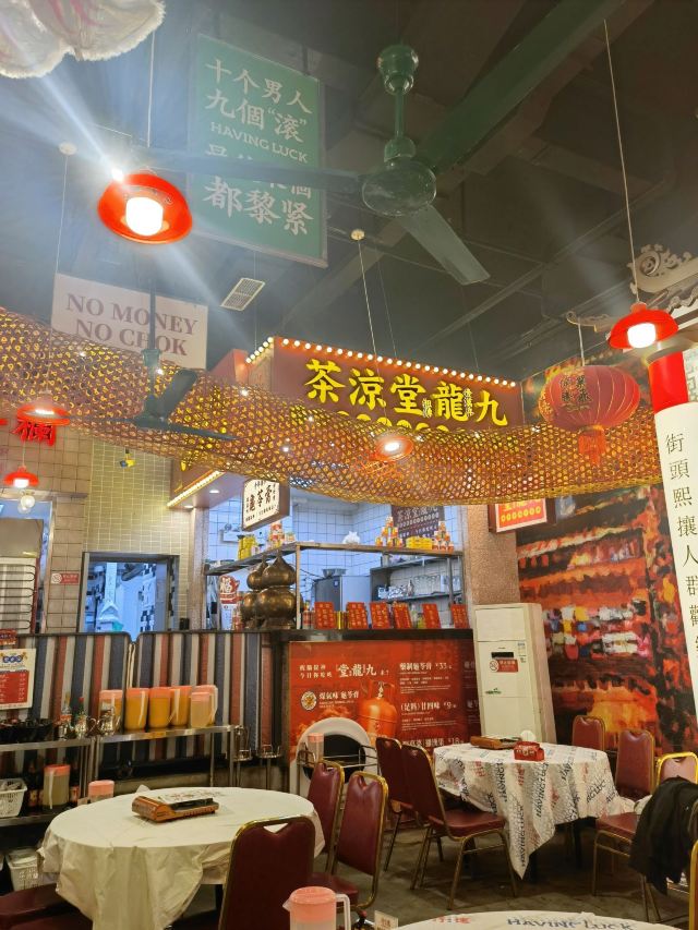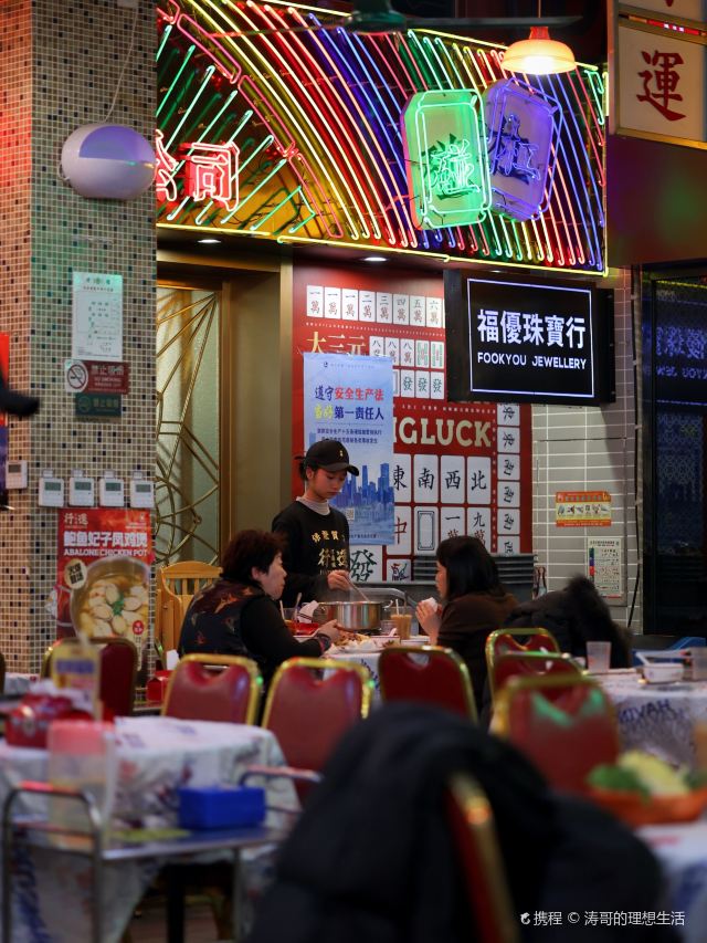 用脚下的路丈量这个世界【环境】 香港大排档的感觉,很地道,瞬间置身铜锣湾的真实感。有包间也有大厅,包间目测还挺大。 【服务】 服务态度都很好,貌似都是广东人,说粤语,跟环境就格外贴切。 【口味】 招牌花胶鸡煲^ 在香港吃过花胶鸡锅,印象深刻。这里味道也很正宗,满满胶原蛋白的感觉,很好吃,QQ的。298很大一锅,料也很足,两个人吃再点一点就够了。我们就点的有点多。 海鲜拼盘^两个人分量有点多,三四个人点来合适,海鲜很新鲜,尤其蹦蹦跳跳的大虾 芝士龙虾饺^没吃出来有没有龙虾但确实很Q 西洋菜^实在吃不动,打包了,但分量不小 小兔子^赠送上,QQ的好吃