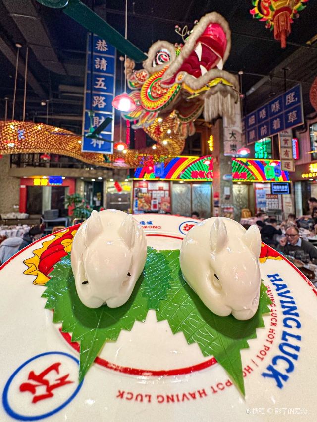 涛哥的理想生活🐉 龙年的氛围感来了,在北京红红火火过大年,当然要选择围炉而坐的亲切感! 🗯 说起龙年应景的宝藏餐厅,当然少不了这家珍爱的“行运一条龙”!还原港式打边炉热闹的场景,屋顶悬挂的一条飞龙,太适合在这里,安排上个龙年春节家宴! 暖洋洋打边炉,吃出好滋味!吃行运好滋味行大运,彩头满满龙年吉祥! ♨️ 招牌花胶鸡煲 一锅金汤色泽浓郁,鲜嫩的走地鸡份量十足,几分钟就能炖煮出鲜美的滋味来!加入的花胶更增添了浓郁味道,入口鸡肉鲜嫩花胶弹牙,满满的胶原蛋白感,太适合年宴来一锅! ♨️ 炸响铃 一道豆腐皮制品,卷卷的样子入锅吸收了汤汁,入口浓郁自带豆皮的香味,金汤锅的好搭档! ♨️小兔子 这一道饭后甜点太萌了,椰香浓郁的小兔子布丁造型可爱,入口冰凉Q弹沁人心脾,甜蜜的味道! ♨️ 海鲜、食蔬、涮肉、小食非常丰富,尤其是再安排上一份黄金泡饭,在涮食后用汤底炖出好滋味,丰富的食材为春节家宴锦上添花! 🐾 行运打边炉(望京店)