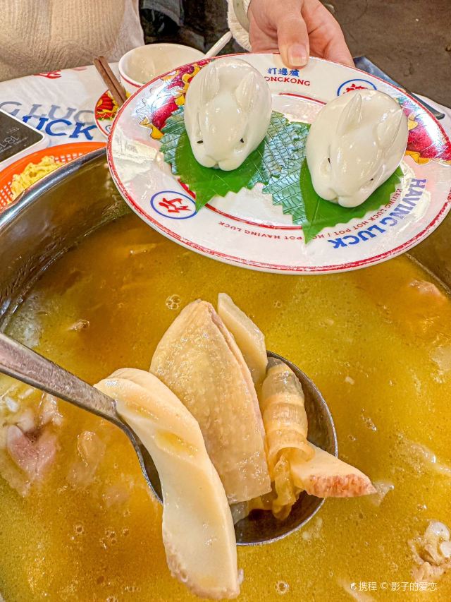 影子的爱恋春节想找一家不打烊的餐厅,来行运打边炉真是首选呀👏环境特别沉浸喜庆,在屋顶还有一条龙的装饰,龙年行大运没错了~今年就让行运陪您过大年吧🎉 店内主打港式打边炉天花板,尤其是花胶鸡锅,真不愧是花胶鸡鼻祖呢!四年必吃榜品牌,味道老少皆宜,聚餐来这太满足啦👪 【菜品推荐】 👍花胶鸡煲 里面的花胶让鸡汤的滋味更加浓郁,入口滑嫩细腻,来一口就会被它的鲜香味道征服,冬天点这一锅太满足啦 👍真係有芝士牛肉饺 外酥里嫩的饺子皮,内藏的鲜嫩牛肉和融化的芝士,吃起来肉香和奶香结合,真是让人欲罢不能呀 👍黄金泡饭 超级豪华的泡饭享受没错了~泡饭金黄诱人,口感香浓爽口,汤特别好喝,不愧是繁花泡饭的升级版,也是店内很不错的招牌啦