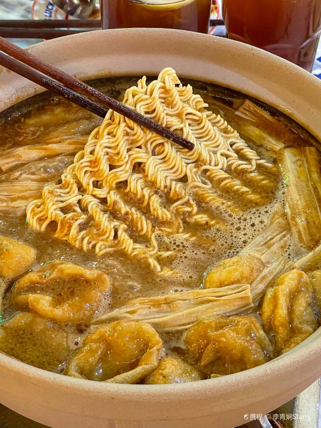 李青娴Starry行运真行! 把庙街搬到北京来了👀 🏡店里一整个无厘头喜庆热闹 大厅超高挑空盘着好大条龙🐉 2楼全是大大小小的包间 包间还带露台🤩🤩 民国复古摩登feel拿捏住了! 💡洗剪吹大包间太欢乐了! 我指给小伙伴看👀 我俩哈哈哈到手机差点拿不住掉到楼下去😆😆😆 chao火🔥的沙爹火锅不出京就能吃到! 不愧是大望京! 大砂锅跟我看何超莲在香港吃的沙爹火锅一样一样的 烤花生🥜沙爹锅底 店员会帮忙涮 先涮牛肉🥩再涮丸子 然后方便面蔬菜🥬 各种食材裹满了酱汁 黏黏糊糊香喷喷😋嗷嗷好吃!! 🎵店里音响好棒!! 吃个饭像听了几十场音乐会🎶 而且越是唱功好的越明显! 好久没听到这么好听的张学友了嘤嘤嘤[Cry][Cry][Cry] #美食旬味会 #浪漫约会餐厅 #尝一尝地道老字号 #冬日漫游指南 #排队也要吃的火锅