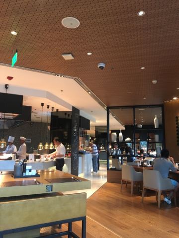 燃餐厅(Food Studio) 是北京金茂万丽酒店别具风格的餐厅之一,这间现代的全天候餐厅设有自助餐、现场烹饪台、开放式展示厨房和户外露台。有机的食材品质,开放式饮品吧摆满新鲜水果,用于制作各式饮品。光亮的木质地板与装饰墙面、黑板上介绍每日特色菜的菜单,营造出一派轻松自然地氛围,如同在家中就餐一般舒适自然。这间全天候餐厅以菜品的新鲜为特色,此外还有大厨的招牌菜——传统的西班牙脆皮乳猪、慢烤澳洲肋排,以及优质海鲜。酒水包括新鲜健康的冰沙、柠檬汽水和各种葡萄酒。