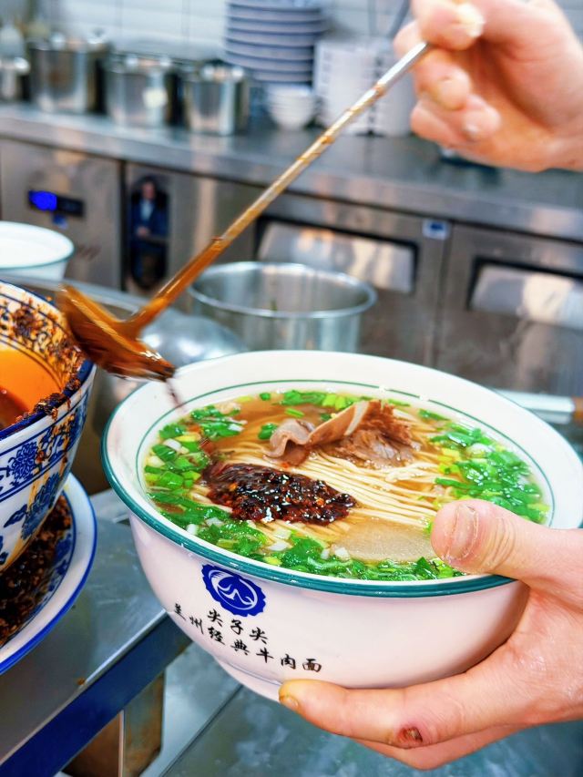 YoYo_0D3O9N5D兰州人盖章!王府井这碗牛肉面太正宗 王府井逛到脚软,就馋这口热乎兰州牛肉面,果然没让人失望! 藏在核心地段的馆子超实在,明档厨房看得明明白白,烟火气里全是兰州街头的熟悉味道,吃完真心夸:这水准太顶了! 必点牛肉面,直接戳中兰州胃——汤清、萝卜白、辣油红、蒜苗绿、面条黄,配齐“肉蛋双飞”才够味!牛肉软烂不柴,卤蛋吸满卤香,浇上一勺辣油,鲜味儿瞬间冒出来,一口就上头。 过油肉拌面更是惊艳,肉片焦香够味,配菜给得足,拌匀后每根面条都裹满酱汁,嚼着满是满足,妥妥的兰州本土口感! 收尾一定要来份奶皮子酸奶,厚到能托住勺子,入口醇厚还回甘,解腻又过瘾。 不出北京就能吃到这口正宗兰州味,妥妥是北京兰州人的心头食堂! #尖子尖兰州牛肉面#兰州牛肉面#好吃不贵经济实惠宝藏美食#王府井附近美食#我私藏的宝藏小店#牛肉面#城市向导官