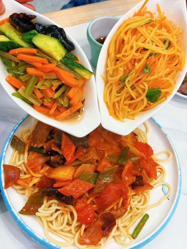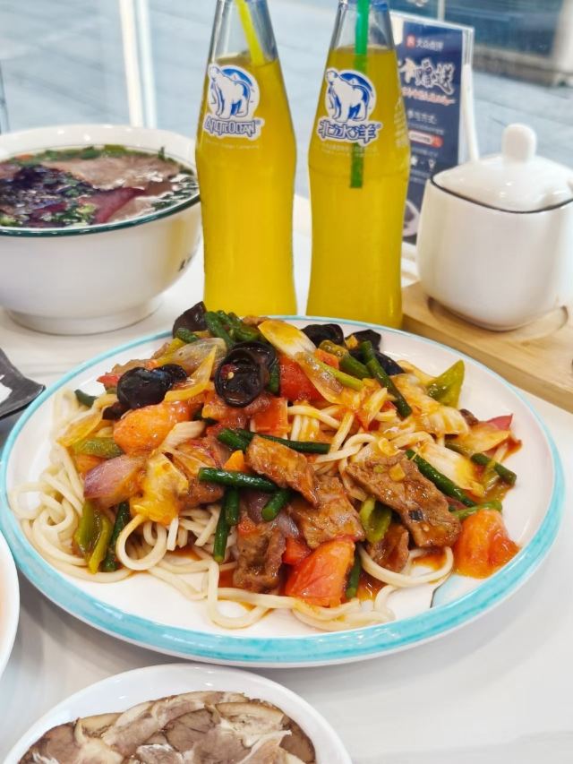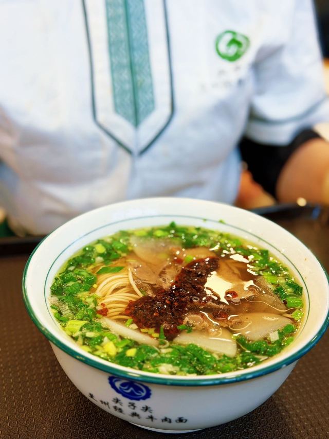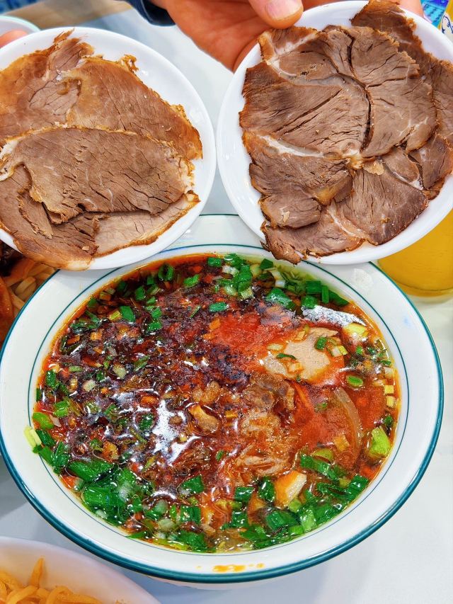 vanessa_萱在王府井~一碗有身份证的兰州味道 王府井从来不缺餐厅,但能让我反复来吃的店,真的不多 这家是朋友安利来的,说是北京难得的、能还原兰州风味的牛肉面馆 经典牛肉面端上来,汤色是透亮的,辣子可以自己加,也可以直接点辣的。真正的一清二白三红四绿五黄。面条是手工拉的,粗细均匀,很筋道。喝一口汤,鲜香味浓 朋友力荐的过油肉拌面也试了,肉片给得很大方,嫩而不柴。酱汁浓郁,均匀地裹在粗面上,每一口都很有滋味。适合喜欢味道重一点的人 奶皮子酸奶的奶皮很厚,口感醇厚扎实,奶味很浓,和超市买到的确实不一样。吃完咸的来一碗,特别舒服 店里的氛围简单实在,木桌椅,绿植点缀,有种踏实的烟火气。人均几十块,能吃得饱又满足 ju