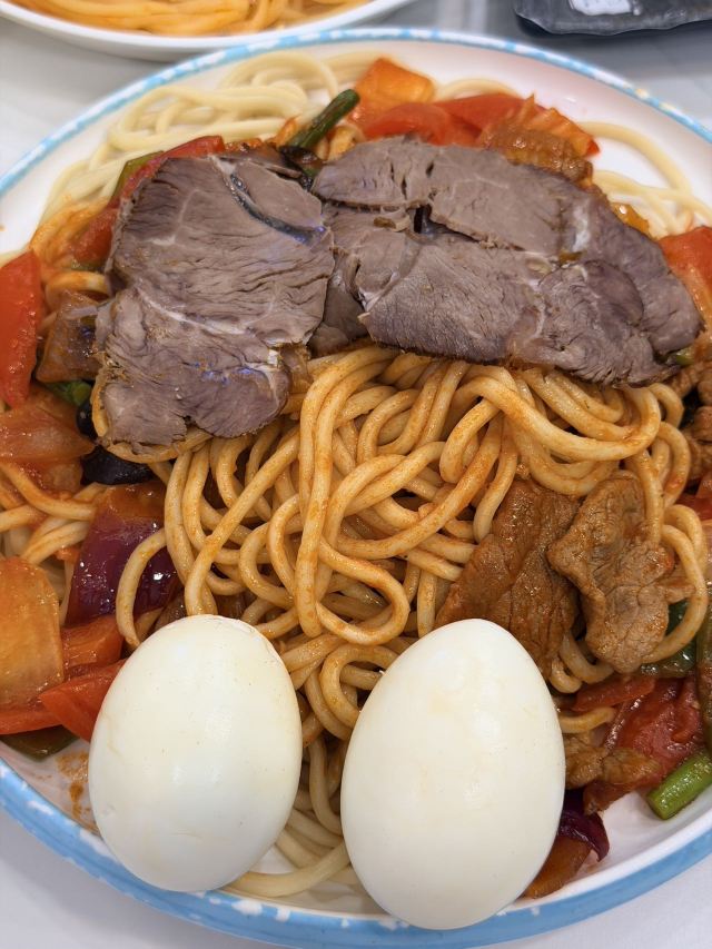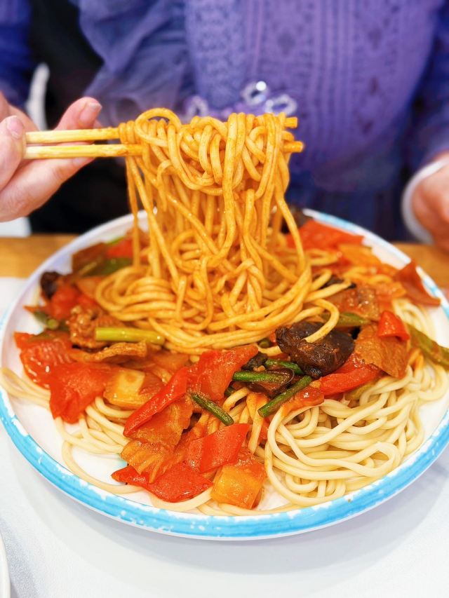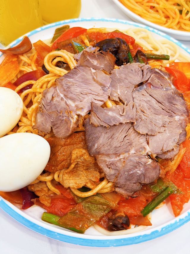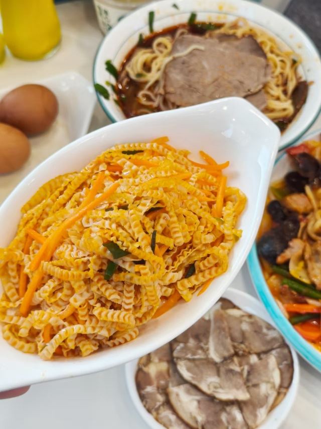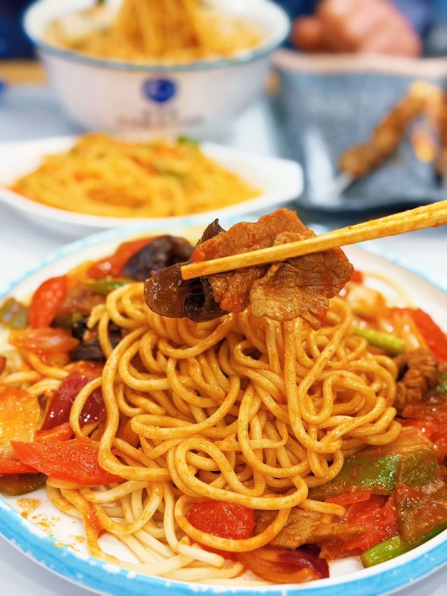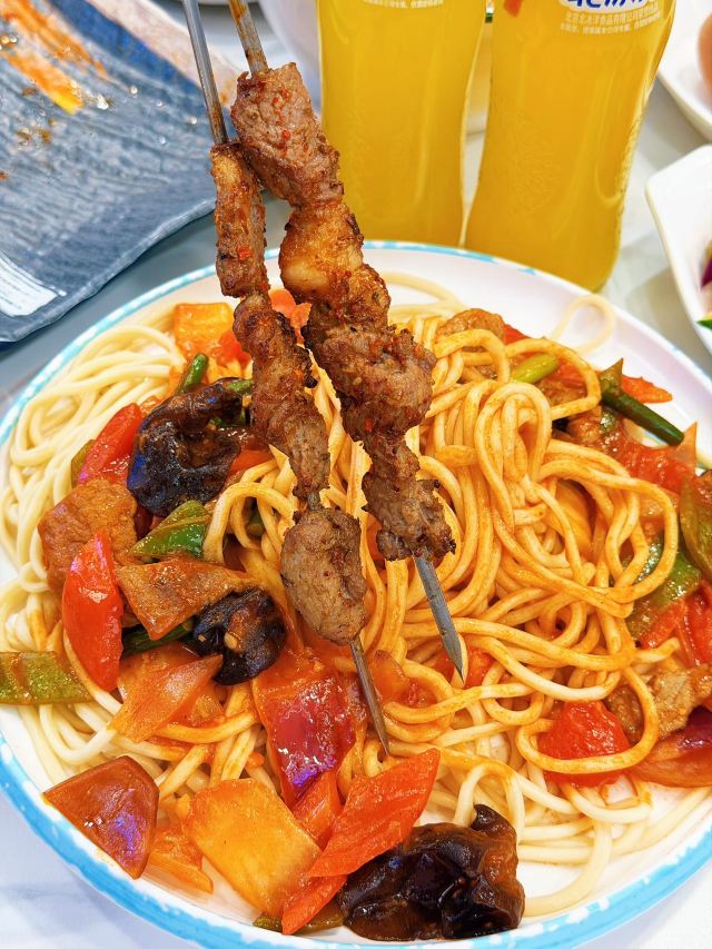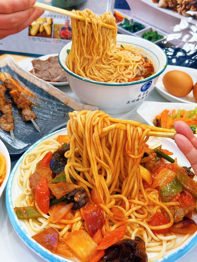 杜海虹王府井这家拉面,简直就是打工人的后食堂 王府井西北口味抗把子,就在尖子尖,营业到凌🕛12点,简直就是打工人的救赎。 这一碗牛肉拉面,味道从兰州直到北京。 上桌就是温暖的存在,汤底是每天现熬的牛骨汤,飘着清润油花,喝一口鲜到天灵盖发麻! 酱牛肉给的量足,肉香软嫩不塞牙。 细面是师傅现拉的,爽滑弹牙,红油辣子,葱,香菜可以按照自己口味添加,每一口都合心。 还有炒面,浇头新鲜现炒,每根面上都裹满酱汁,嗦到满足。 烤串种类丰富,羊肉串大串焦香,肥瘦相间,撒上孜然辣椒面,搭配面条吃更够味。 小菜任选种类多,还可以额外加份腱子肉、鸡蛋,好吃又有营养。 吃完面来个厚奶皮酸奶,人均30+吃到撑,值得反复来吃。