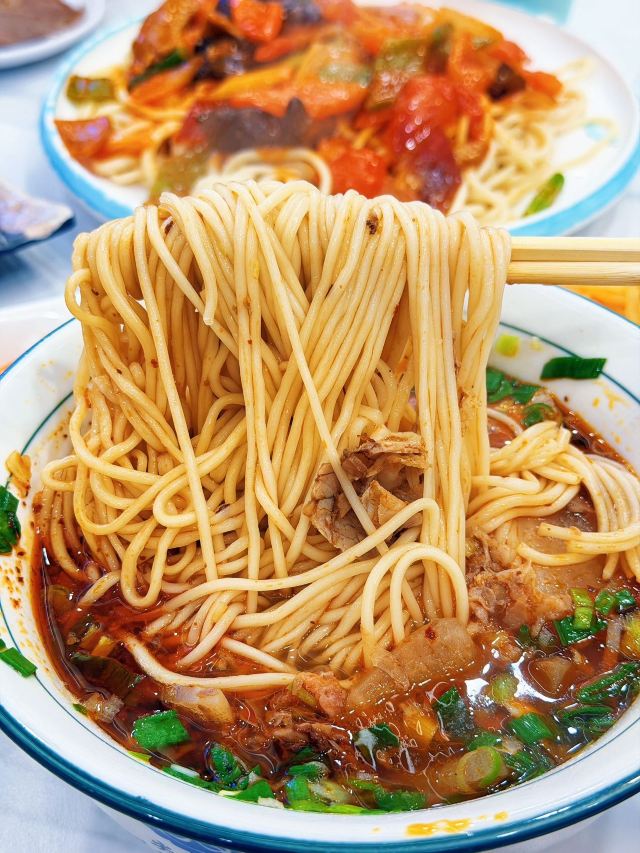 YoYo_9S4Y6D0B北京藏了家兰州面,西北同事每周来3次 终于找到同事反复安利的兰州面馆,藏在王府井附近,吃一次就明白为啥成他“心头好”! 招牌过油肉拌面必点,羊肉片厚实不柴,嚼着满是肉香,手工宽面裹满鲜浓酱汁,每根都挂味,越拌越香;牛肉面也超地道,汤头清亮鲜醇,面条筋道够弹,浇上一勺香而不辣的辣椒油,再撒把蒜苗,一口下去超够味。 一定要配份奶皮子酸奶,奶皮厚实,入口绵密,酸香浓郁还不腻,吃完面来一碗,解油又舒服。老板说面和调料都从西北发,难怪复刻出正宗兰州味。 不出北京就能吃着这口地道西北面,性价比还高,逛累了来一碗超治愈! #尖子尖兰州牛肉面 #兰州牛肉面 #王府井美食探店 #宝藏平价美食 #西北风味美食 #我的日常干饭清单