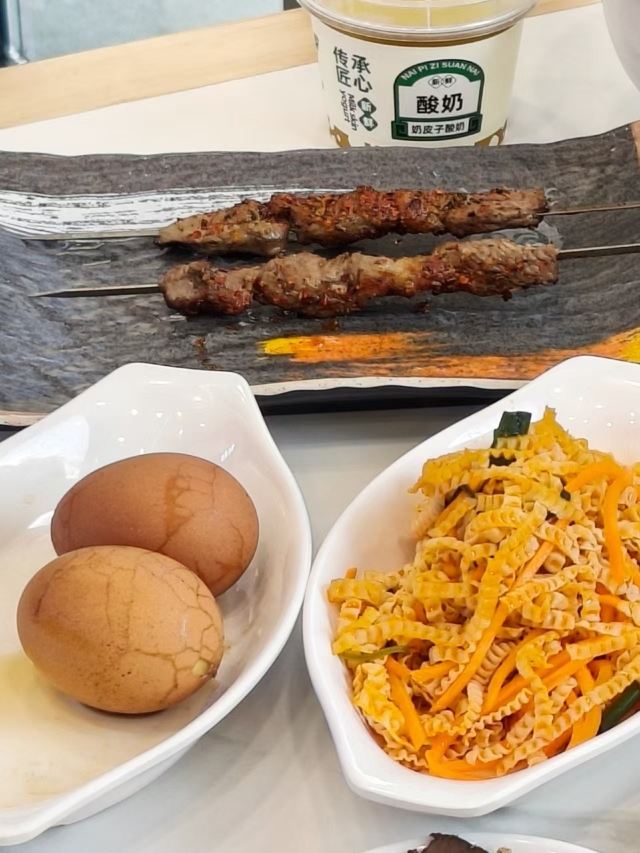 YoYo_1V1J8H9D总说在北京吃不到地道兰州牛肉面,直到撞见这家尖子尖~ 推门就是牛油和香料的香气,瞬间梦回兰州街巷里的老店💕 一清二白三红四绿五黄,这碗面从兰州直达王府井~ 牛骨熬的清汤透亮,萝卜片白净,辣油红亮不呛,香菜蒜苗鲜绿,手工抻的面条根根金黄劲道 点单必冲肉蛋双飞,二两草原黄牛肉纹理分明,一口面一口肉,肉蛋冲击直接香到跺脚~ 过油肉拌面是在外地游子的白月光拌面,酱香裹着劲道面条,一口回魂~ 奶皮子酸奶一定要试,奶皮厚到能站勺,口感醇厚回口香,和工厂货完全不是一个段位 再来几串焦香羊肉串、一份清爽凉菜拼盘,配着北冰洋呲溜下肚,妥妥的兰州人的北京食堂👍🏻