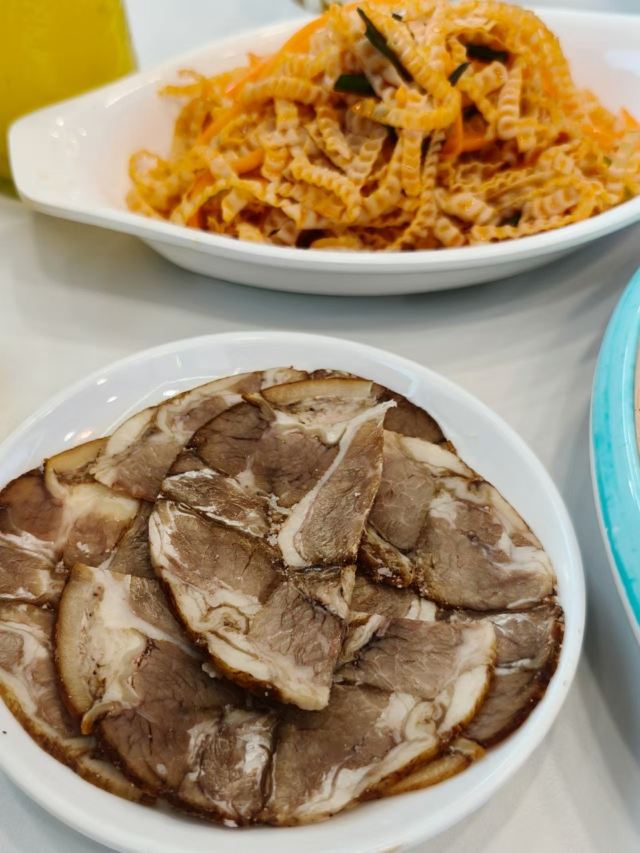 在王府井~一碗有身份证的兰州味道 王府井从来不缺餐厅,但能让我反复来吃的店,真的不多 这家是朋友安利来的,说是北京难得的、能还原兰州风味的牛肉面馆 经典牛肉面端上来,汤色是透亮的,辣子可以自己加,也可以直接点辣的。真正的一清二白三红四绿五黄。面条是手工拉的,粗细均匀,很筋道。喝一口汤,鲜香味浓 朋友力荐的过油肉拌面也试了,肉片给得很大方,嫩而不柴。酱汁浓郁,均匀地裹在粗面上,每一口都很有滋味。适合喜欢味道重一点的人 奶皮子酸奶的奶皮很厚,口感醇厚扎实,奶味很浓,和超市买到的确实不一样。吃完咸的来一碗,特别舒服 店里的氛围简单实在,木桌椅,绿植点缀,有种踏实的烟火气。人均几十块,能吃得饱又满足 ju