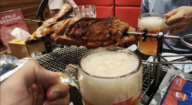 周五晚上朋友想吃烤羊腿,来了他附近一家比较火 的,黑森林之前点过他家外卖,感觉不错,今日一见,这排队情况,雀食是真的好吃真的火 些环境: 比较嘈杂,星就扣这儿了,太嘈杂了,说话要喊,很有夏天烟火气,适合哥们喝酒聊天