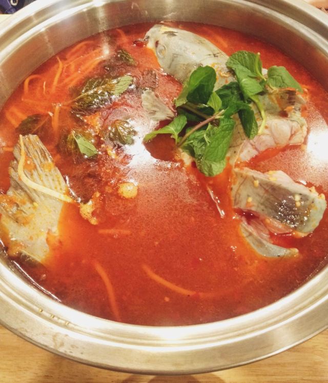 西南官话贵州私房菜 位置~望京麒麟公社1层繁华地段。 服务~上餐很快。服务不错。 环境~现代时尚。 贵州酸汤鱼~红红火火,酸辣爽口。 鱼是肉质肥美的乌江鱼。 汤是地道贵州味儿。开始微微辣,越熬越酸爽。太好喝。全程喝了四五碗汤。 汤里再涮上米粉,蔬菜,滋味更丰富。吃完鱼,继续嗦粉。 不蘸酱料已经很美味,也可随心蘸酱料吃。 青岩状元蹄~ 猪蹄热乎出锅,脱骨,软烂,入味。辣椒面很香,是单独盛放。推荐不能吃辣的点这道菜。