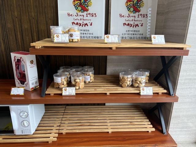 到崇文门饭店吃饭,顺便就来这边的1983打卡,面包坊在饭店的南侧,很显眼,装修很普通,还真有些1983年的影子,马克西姆餐厅绝对是那个年代的顶级。 店里的面包种类并不多,而且价格也不贵,唯一明星产品拿破仑系列那是相对贵些的价格,有几种种类,草莓、蓝莓、原味、巧克力和榛子,一看就诱人,选择了原味和草莓,酥脆新鲜,甜度适中,好吃😋