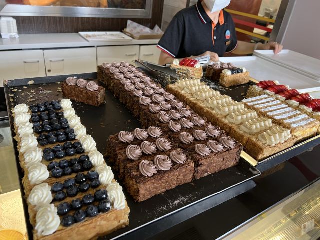 巧克力布朗尼,榛子拿破仑,草莓拿破仑,黄桃拿破仑,牛角面包,巧克力拿破仑,椰丝排,原味儿拿破仑,蓝莓乳酪拿破仑,红丝绒,法芙娜栗蓉,巧克力慕斯