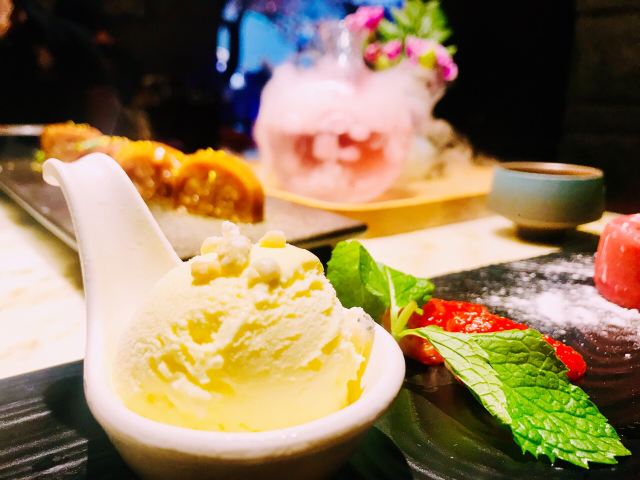 ☘️绿茶餐厅:世外桃源,一杯一盏 绿茶菜系:属于苏杭菜,口味清淡,不喜欢太辣的同学的首选!菜品较多,好吃不说,还有很高的颜值!性价比超高,分量适中! 绿茶环境: 偶然间,在嘈杂的环境中发现一处桃花盛开的地方,目光被深深吸引,仿佛发现了陶渊明笔下的世外桃源,餐厅两侧是盛开桃花的桃树装点,入门是石阶石桥,有潺潺流淌的水,小船停靠在一边,轻拂水面的薄雾缓慢摇曳!放着古典清幽的音乐,舒缓且有意境,很适合朋友聚会畅谈,放松心情享受时光流淌! 餐厅特色: 服务员穿着古装,服务周到,等位排队的时候有各种小零食 ️有免费宝宝餐 ️生日的话告诉服务员,还会给唱生日歌! 装饰细节,餐具特色,菜品细节都适合拍照,喜欢拍照的小伙伴也可以得到满足 特色菜品: 这次不太饿吃的清淡但都很好看,推荐给大家; 面包诱惑:比较经典,面包的香脆加冰激凌的清爽香甜,入口都是满满的幸福 绿茶烤肉:非常入味,肥瘦相间,香而不腻,边缘带点脆爽,个人很喜欢 红糖糍粑:金黄金黄的糍粑外酥里糯,蘸上红糖,吃在嘴里味甘且绵长,香甜脆糯 樱花酒:淡淡粉色在透明且有纹路的小酒壶里格外的清新好看,加上会有干冰加水,瞬间餐桌云山雾罩,这时候你像置于仙境!很适合 (位置)详细地址: 东小口镇立汤路186号龙德广场1号楼F4-011 地铁5号线,立水桥站下车 (金钱)人均消费:70/人