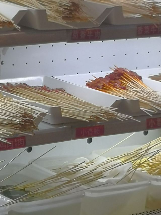 保鲜柜里摆满了各式各样的串串,非常新鲜。