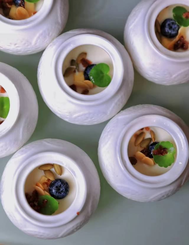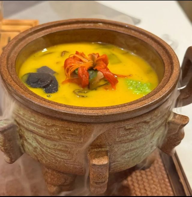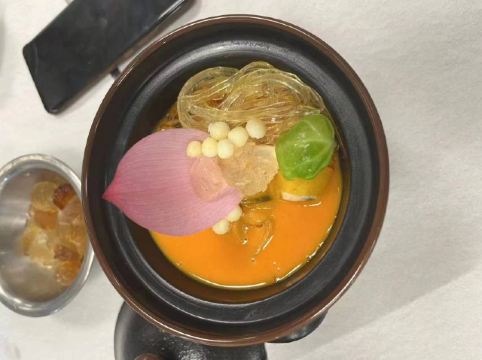 养生老火滋补汤,花雕浓汤烩三鲜,叶叶菩提,佛跳墙,玉米浓汤锅,黑松露佛跳墙,黑椒猴头菇排,景泰蓝姜黄咖喱锅,黑椒巴楚菇,开胃小吃,藜麦沙拉,牛油果冰花燕(女士),芒果酸奶慕斯,南极海笋,甘露桃胶,玉米水晶红燕(女)