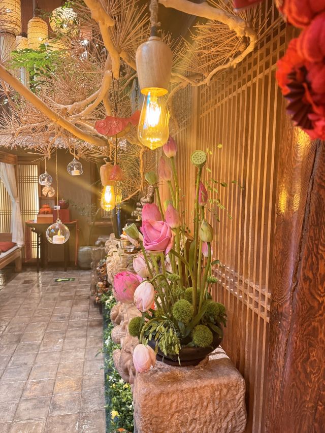 叶叶菩提素食餐厅,一家以其独特的素食文化和精致的菜品而闻名的餐厅。 环境:餐厅环境典雅,装修风格中式赋有禅意营造出一种宁静而舒适的用餐氛围。包间设计素雅宁静,适合商务宴请或家庭聚会。 服务:服务员对每一道菜、每一个细节都充满热情,为顾客提供周到的服务。他们不仅介绍菜品,还分享菜品背后的故事,让顾客在享受美食的同时,也能感受到餐厅的文化底蕴。 叶叶菩提的菜品创意十足,每一道菜都像一件艺术品。如招牌菜“黑松露佛跳墙”,以菌菇替代传统食材,口感醇厚,令人惊艳。 在叶叶菩提用餐,不仅可以品尝到美味的素食,还能感受到餐厅的禅意文化和温馨氛围。无论是商务宴请还是家庭聚会,都是一个不错的选择。 总的来说,叶叶菩提素食餐厅以其独特的素食文化、精致的菜品和优质的服务,带来一次难忘的用餐体验。