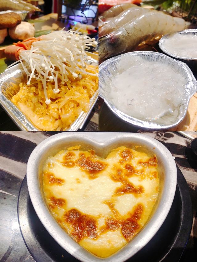 烤肉十三天梯,土豆泥,聚十三秘制牛排,摩天轮,小料格,甜品大福,鱼豆腐,酸菜,心有所属(芝士地瓜),极品雪花肉