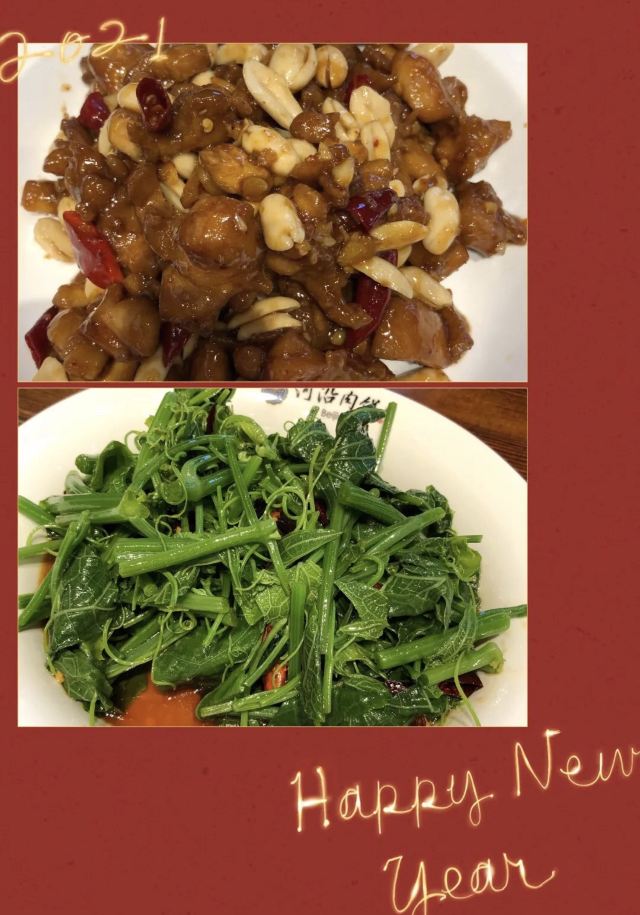 嫩香牛肉饼,宫保鸡丁,小碗酸辣汤,猪肉饼,宫保鸡腿丁,乾隆白菜,韭菜鸡蛋饼,芝麻酱糖饼,炸灌肠,酸辣瓜条