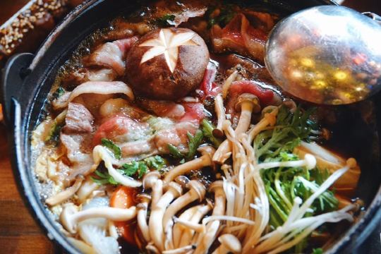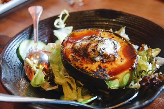 从车库出来就看到这家店 那就它吧,不能吃生鱼片那就吃寿喜锅 他家的寿喜锅真心不错 肉片不是特别薄的 他家的牛肉有点咬劲,肥瘦相间 我突然发现烤牛油果好好吃 各种小串浅尝辄止 他家虽然是工作日中午 人也真心不少 有室外的桌子,夜幕下绝对超级浪漫