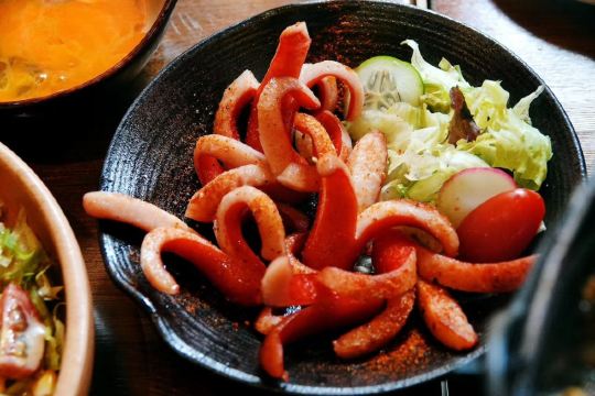 【环境】非常多的动漫手办和玩偶,喜欢#日本动漫# 的朋友,这里也能算半个天堂! 【必吃】两个烤串非常的让我感到惊艳 第1个就是烤黑猪五花肉,整个五花肉被烤得及其焦脆,外面可以咬出咯吱咯吱的声音,但是里面还充盈了汁水,简直好吃的不要不要的。 另外一个就是鸡翅包,原来没有理解什么叫鸡翅包,咬开之后满满的鱼籽在口中爆炸,简直太惊喜了。