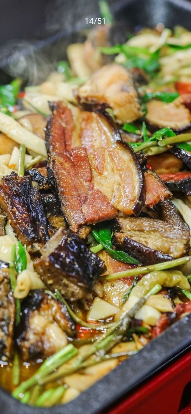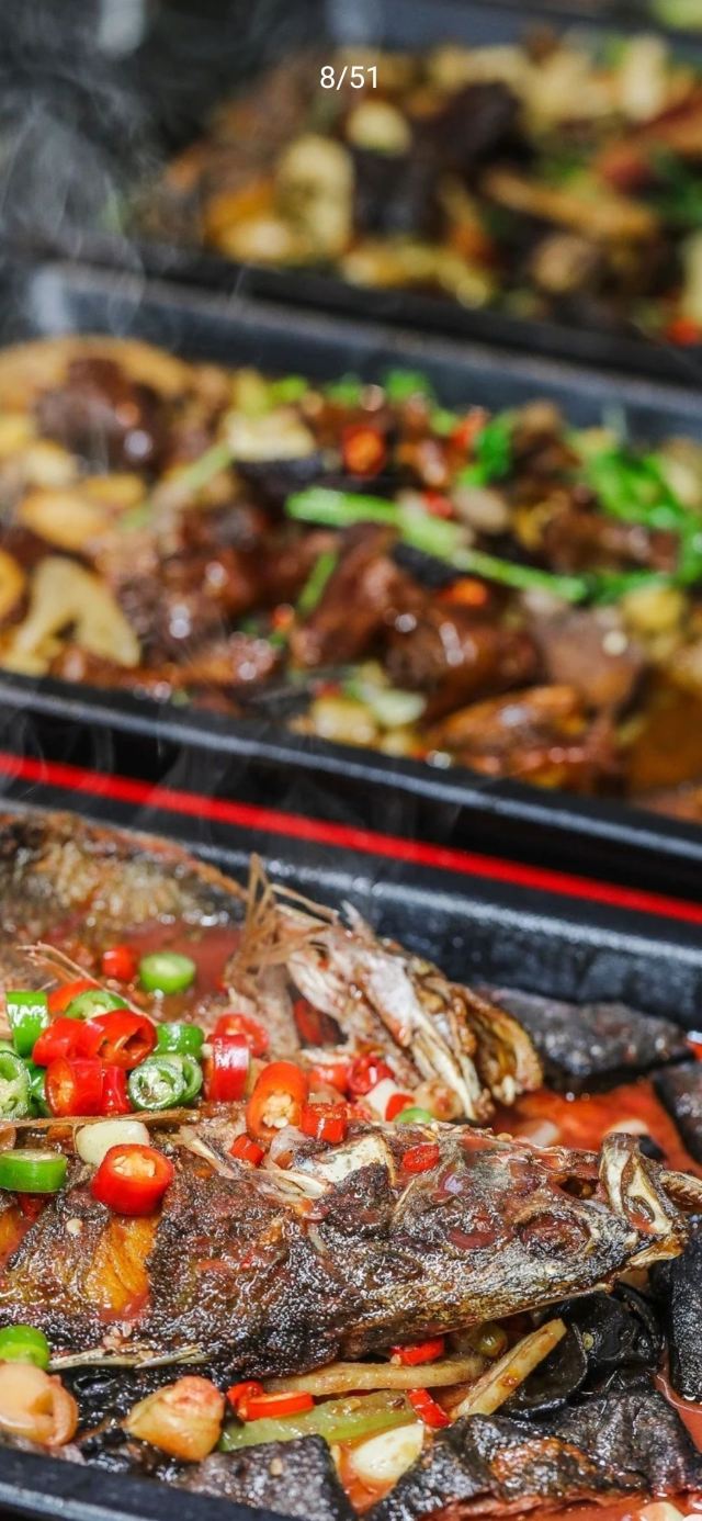 青椒炒肉,剁椒水库鱼头,秘制坛香肉,酱汁大坝香干,火宫殿臭豆腐,大蒜干椒炒腊牛肉,擂辣椒皮蛋,清炒时蔬,爆炒牛蛙,衡东煨蛋