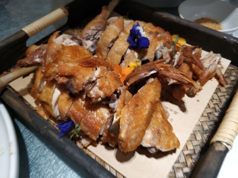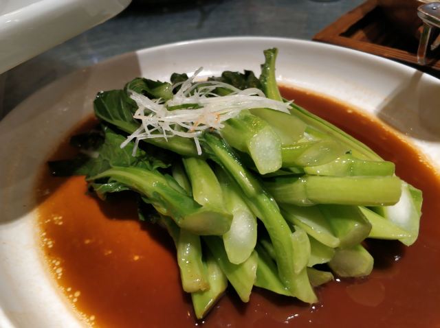 大行在北京丰泽园品尝正宗鲁菜,预算足够又想一步到位的话,首选当然是葱烧海参。如果只是平日进餐、细品小酌、亲朋小聚,这个香酥鸡不错,一只不大的鸡108元,看上去似乎贵了点儿,但鲁菜的香酥鸡不仅选料严格,工艺更是考究,从预处理、腌渍码味到蒸制、紧皮、着色、冲炸,道道工序不得马虎,且火候足到,成品才能达到鸡皮红润焦酥、鸡肉软烂入味的标准,他家香酥鸡功夫到家,不妨一试。 这个银丝卷则有些差强人意了,首先色、形两项就不那么惹喜。 至于这个白灼芥蓝,本不是鲁菜系中的,不评价了,点它是因为找不到更合适的全素菜品。 真心希望在丰泽园还能品尝到更多经典的鲁菜,比如九转大肠,比如锅烧/红扒肘子,比如罗汉豆腐/面筋,等等。