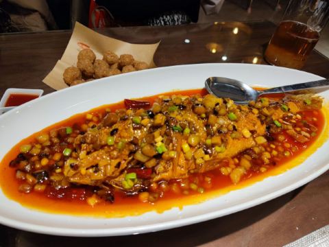 爱玩耍的小妞儿以前总去大栅栏的丰泽园老店,这次尝试了南礼士路的分店,虽然在地下,环境还是不错的,吃饭停车送停车券,服务热情周到。 干烧大黄鱼^爱在一餐一食中,冲这一道菜就值得再刷,鱼肉细嫩鲜美,口感偏甜,配的料汁绝绝子,胡萝卜、香菇、冬笋、火腿等切成丁,铺在鱼肉上一起吃太香了, 我们都吃光了[调皮] 干炸丸子^外焦里嫩,肉馅晶莹的白色,虽然偏肥,但猪油味香溢十足,吃了就停不下来,贴心的配了椒盐、番茄酱和面酱。 风味茄子^这个很创新,茄子炸的能拔出丝来,焦脆可口,麻辣甜香,但是又不像拔丝菜品凉了会硬,凉了照样焦脆。 爽口马家沟芹菜^脆嫩爽口,丝削的特别细打着卷,外型有趣,就算一道凉菜也有创新,上面点缀了一般用在甜品上的小红点,好看又好吃。
