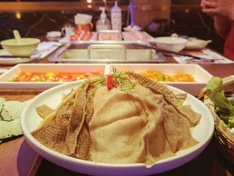 招牌现炸酥肉,水上漂嫩牛肉,澳招牌洲千层肚,麻辣火锅锅底,九尺鲜鸭肠,自制鸭血,特色老红糖糍粑,美容木瓜番茄锅,招牌大片草原鲜毛肚,小油条