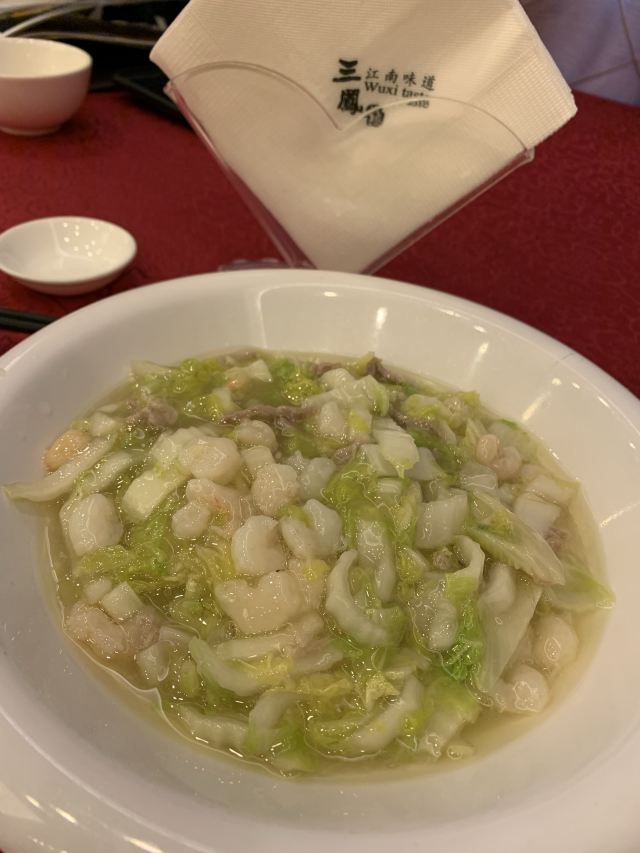浣熊侠到无锡游玩,住在三阳广场附近的酒店。看了点评,三凤酒家是老字号。我们到无锡的第一顿饭就是在这解决的,它家的招牌菜酱排骨味道好,水晶虾仁新鲜弹牙,口感超好。无锡小笼真心吃不习惯,太甜了,好腻口啊!游客来无锡可以去尝一尝~