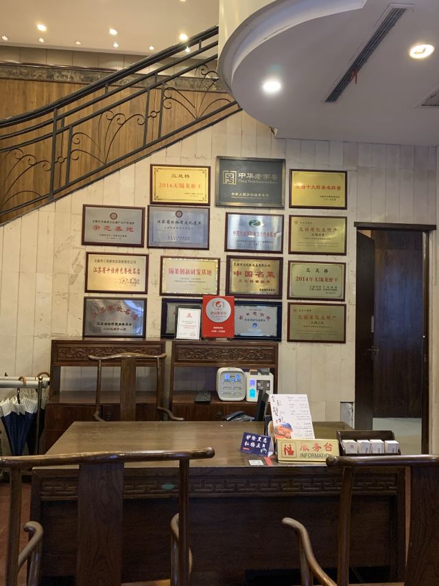 SAN FENG JIU JIA在无锡接待朋友,三凤酒家应该是比较能吃到正宗无锡菜的饭馆之一吧,抽一晚带上朋友来尝一下。 饭馆比较大,一楼散座,小吃、排骨、汤包为主,可惜晚上关得比较早。二楼大堂,都是大圆桌,能办宴席。 无锡排骨还是很正宗的(其实也不清楚到底正宗啥味?),朋友是北方人,平时不喜欢加了糖的菜,但是对无锡排骨还是觉得不错的。