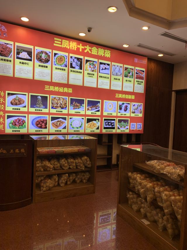 腐乳汁肉,梁溪脆鳝,糖芋头,响油鳝糊,无锡酱排骨,水晶虾仁,镜箱豆腐,无锡小笼包,玉兰饼,四喜面筋,泡椒凤爪,蟹粉豆腐,油爆糊鳝,三凤桥小笼,炒虾仁,桂花糕,红烧白鱼,炝虾,蟹粉小笼,无锡面筋,什锦面筋,蟹粉蹄筋,小笼包,糖醋排骨,虾仁,三凤排骨,肉骨头,虎皮凤爪,鸡翅膀,黄金鸡翅,蟹粉,蟹粉虾仁,元宝鸭,新鲜酱排骨,梅汁翅中,一锅鲜,排骨,面筋,油爆虾