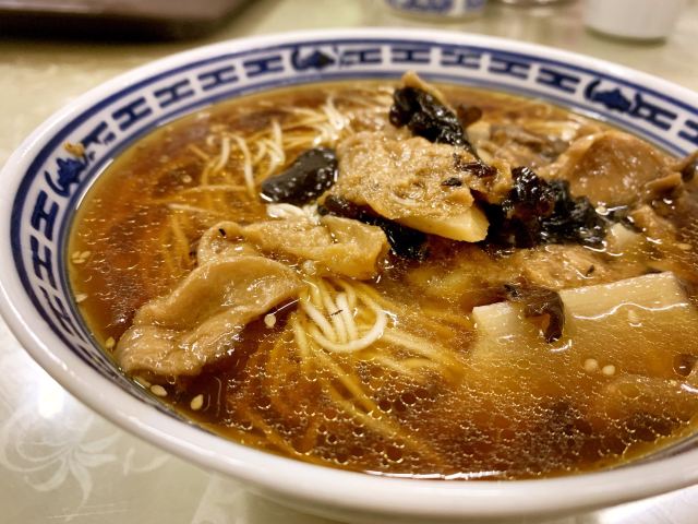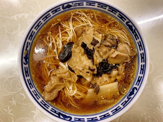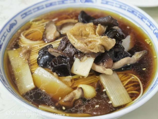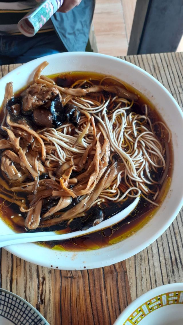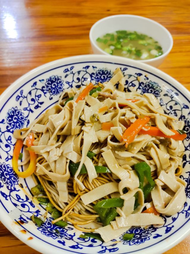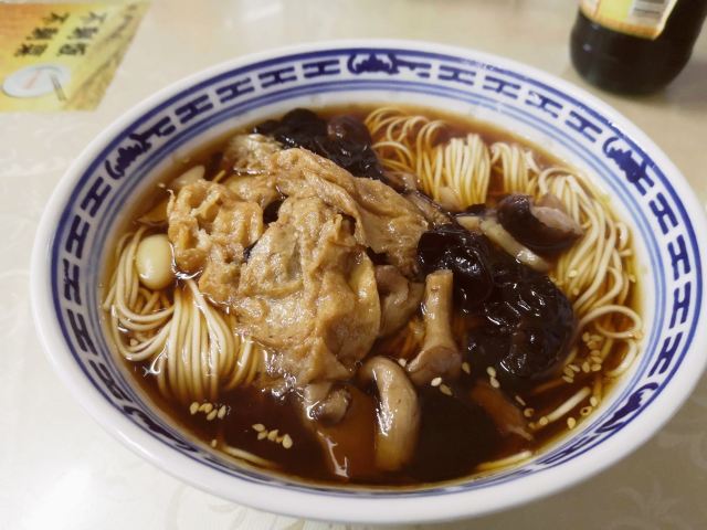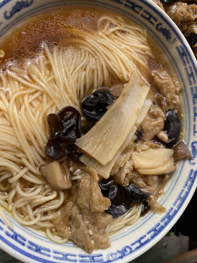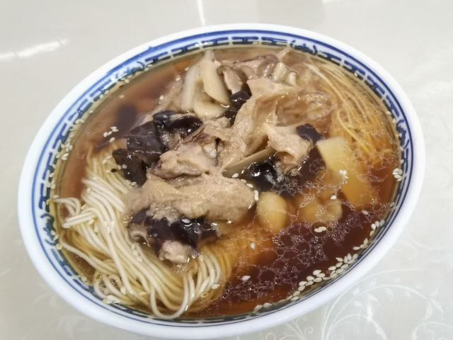 面馆位于5A景区鼋头渚内,人气很旺,经典的素斋都可以尝到:罗汉面、素鸭、莲藕做成的糖醋排骨等。罗汉面是招牌,用餐前需要自己去领,汤头很鲜美,面条也很劲道,口味鲜咸又有点甜,典型的江浙风味。