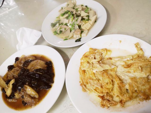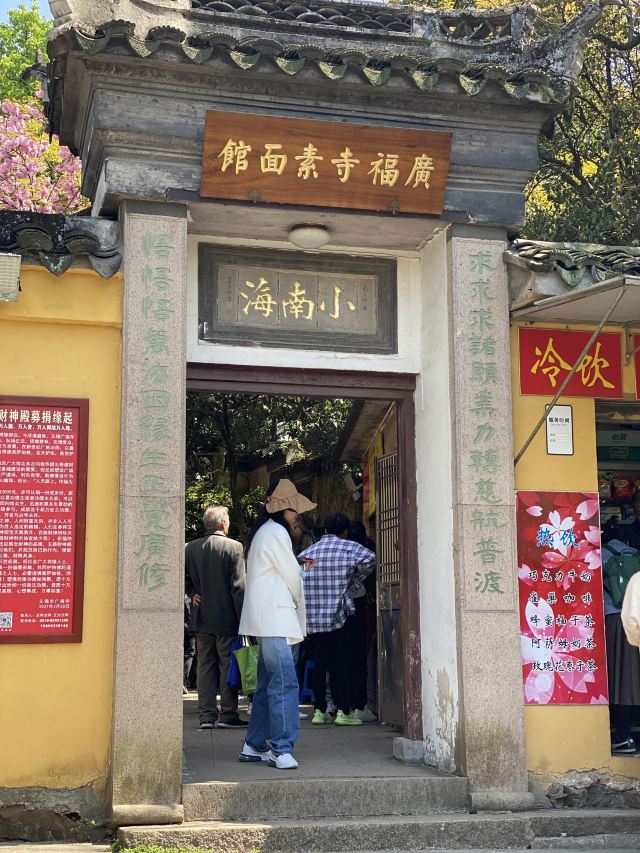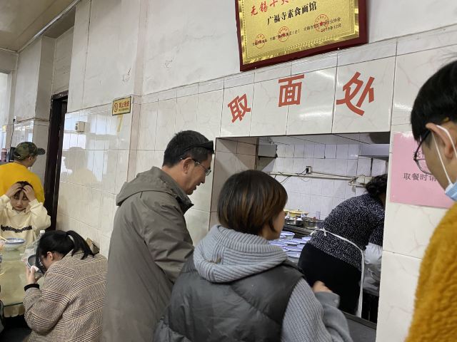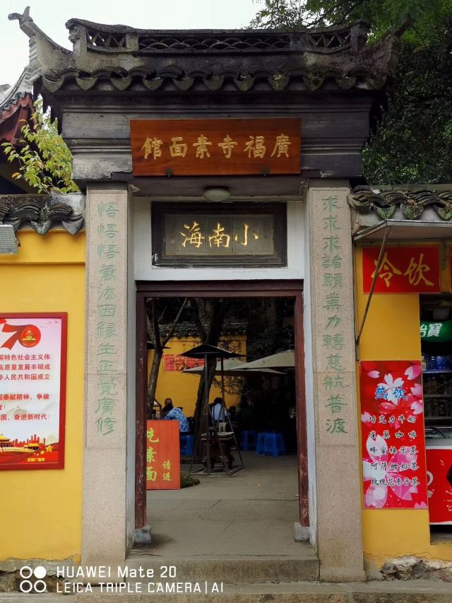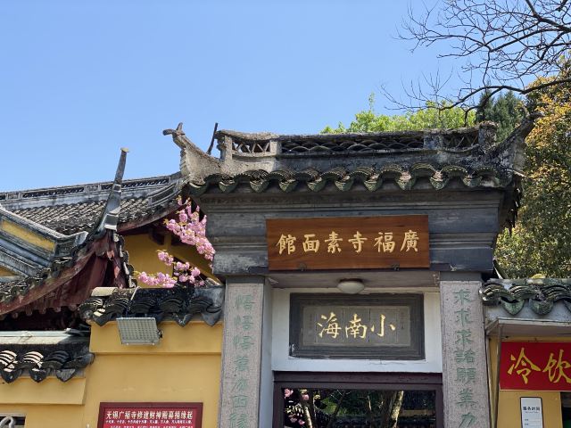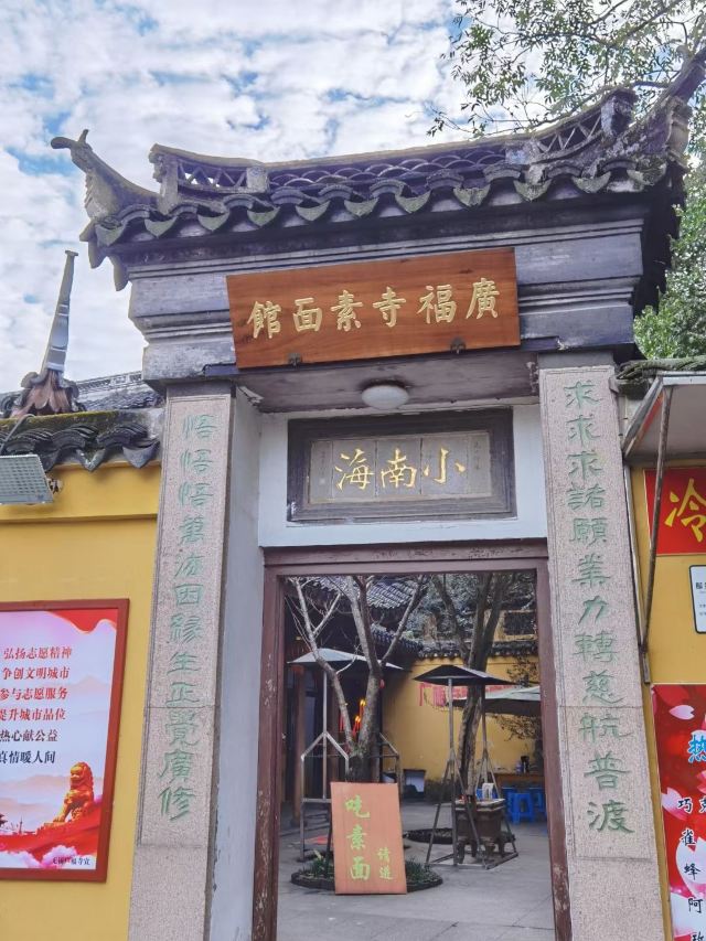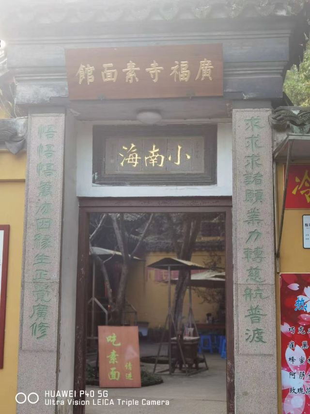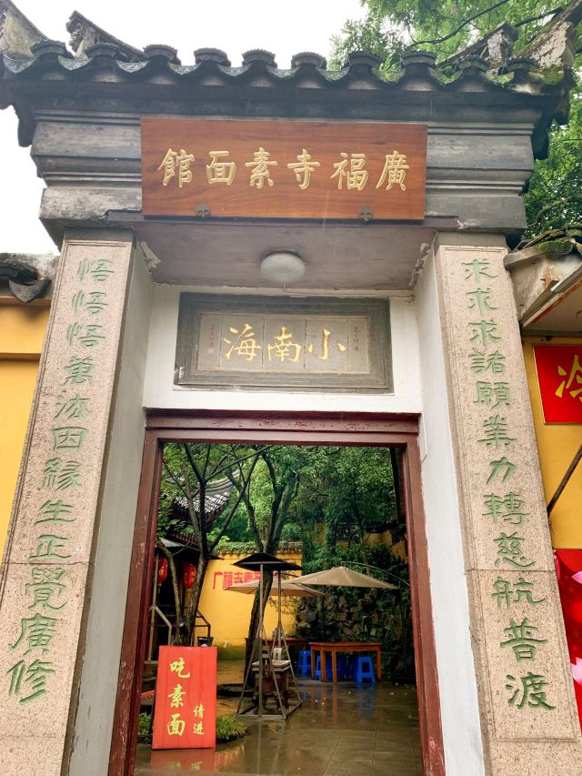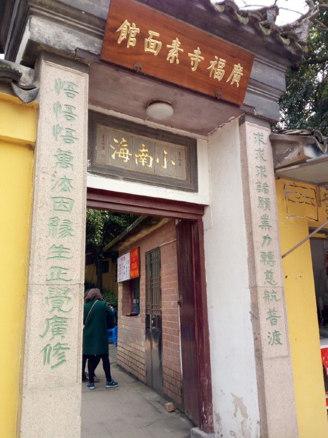 guang fu si su mian guan周末冒雨去了无锡著名景点鼋头渚景区,本来还担心景区里吃饭的问题或者都不好吃,搜了下发现很多人推荐广福寺的素面馆,还有些就是莫名特地来吃碗面的。下了景区的公交车跟着导航走了一段,有一点点上坡路也就步行十分钟左右,看到指示牌子就到了,在门口点单去的那天只供应盖浇罗汉面,还点了份素黄雀和糖醋小排,罗汉素面闻着就想,满满一份面非常精道不软不硬刚刚好,素的浇头也很好吃,面筋烧的特别酥还有笋片把鲜味给调出来了,真的很香;黄雀就是油炸豆腐皮,外皮好脆呀里面馅料还不错一定要趁热吃,糖醋小排的料调得非常好,甜而不腻里面也是脆脆的,只是多吃点有点点油,味道都不错,去景区的一定要去尝一尝。