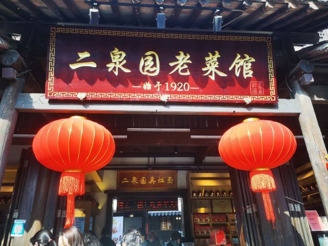 ER QUAN YUAN• 🏡环境古色古香:位于惠山古镇绣嶂街3号,店内装饰充满古韵,木质门窗雕梁画栋,仿佛穿越回了老无锡。 • 🍖菜品经典传统:无锡菜口味偏甜,这里的菜品保持了传统风味。推荐梁溪脆鳝,外酥里嫩,甜咸适中;还有四喜面筋,软糯入味。 • 🍽️性价比高:人均消费约85元,菜品分量足,价格实惠。 • 🕒人气火爆:生意非常好,建议早点前往,避开用餐高峰。 🎉总结:二泉园老菜馆是无锡的百年老字号,无论是环境还是菜品都值得一试,是体验传统无锡菜的绝佳选择。