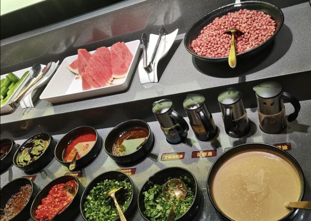 这家店很好找,从地下停车场B2坐电梯直达店面,环境宽敬,服务到位,工作日中午来上座率接近一半,生意不错,点的番茄锅底很鲜美,毛肚跟扯面好吃,不足的地方在于小料和水果种类少,没有最 常见的花生酱,水果也只有西瓜和黄瓜。