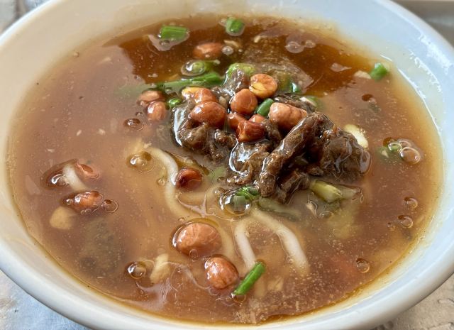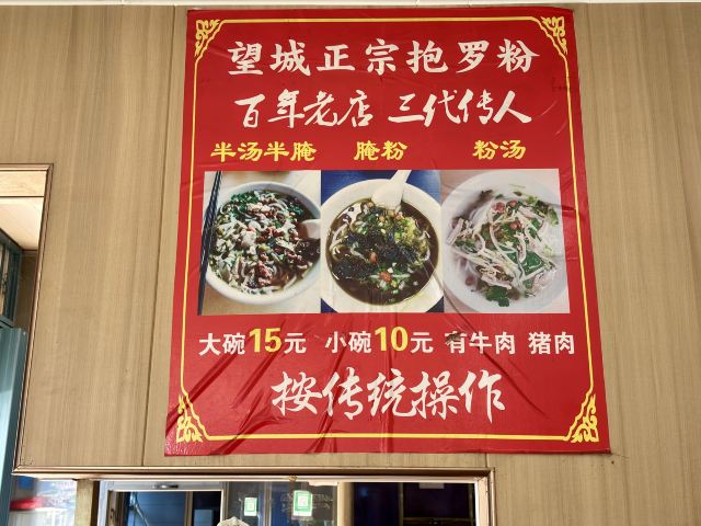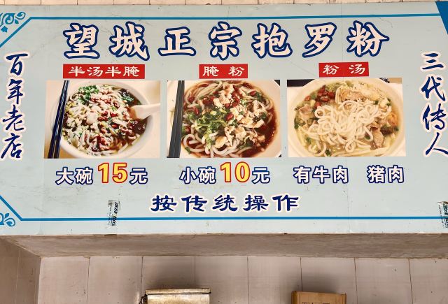 五年前第一次来文昌,就偶遇了这家“望城抱罗粉”,这次环游海南,故地重游,专门再来品尝一次,味道一点没变,还是老样子。 粉店开在一栋非常漂亮的百年骑楼的底层,仅一间门面,生意兴隆,自己找位子坐,然后进去里间厨房窗台上点餐,老爷子年岁已高,坐镇在桌子后的太师椅上,说起曾经来过,老爷子的话匣子也打开了,就像老朋友见面一样。 有三种说法,腌粉也叫拌粉,用牛骨熬制的纯卤汁浇在上面,口感浓郁,但稍显齁感,本地人的最爱。粉汤是加入海螺汤,偏清淡。半汤半粉,就是上面两种的结合体,大多数人都适合的口味。 抱罗粉是海南4大名粉之一,感觉最好吃的一个,“抱罗”是黎语,文昌下辖的一个镇,“望城”是文昌最有名的抱罗粉百年老店了,千万不可错过。