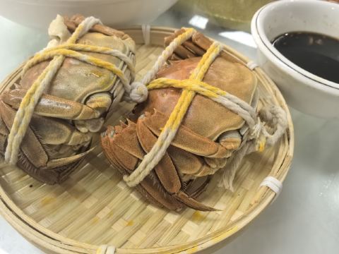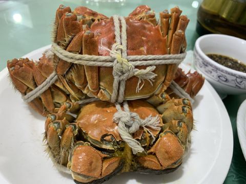 就在沙家浜风景区门口,晚上过去这家的生意最好一些,隔壁的芸海阁也不错。这次尝试了一下大闸蟹,120一对,公蟹很大有半斤重,肉质细嫩但鲜味欠缺,明显不如巴城的好吃。红烧昂刺鱼放了些咸菜口味赞。白斩鸡也不错。水芹很嫩,在上海吃不到的。