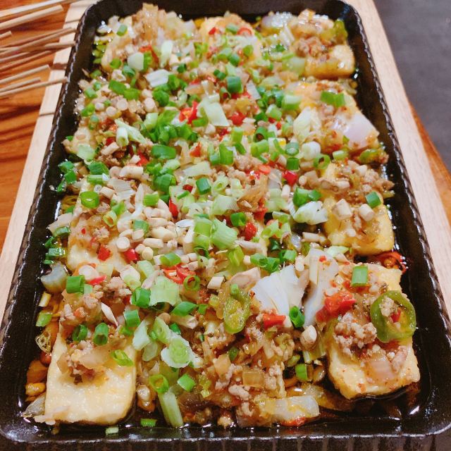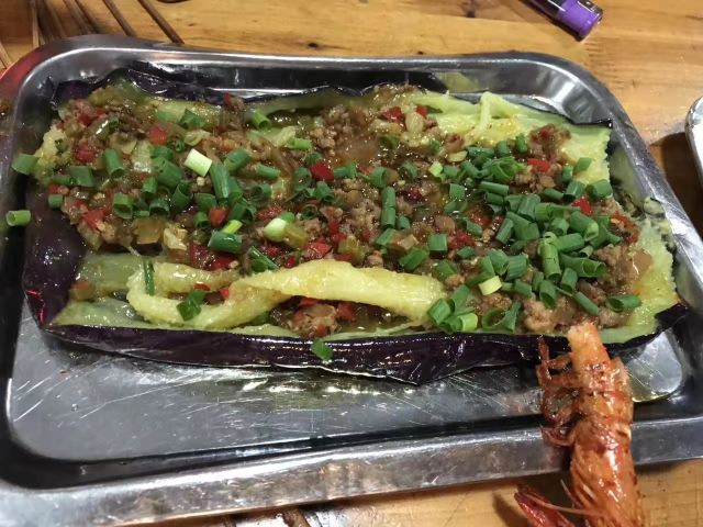 烧烤一定要点的就是五花肉,肥瘦相间的五花肉还是很好吃的,但是有的五花肉全是肥肉就给人体验感偏差了,希望这一点能够改进。烤大茄的肉沫酱料非常够味,有一点点辣,但也很好吃。