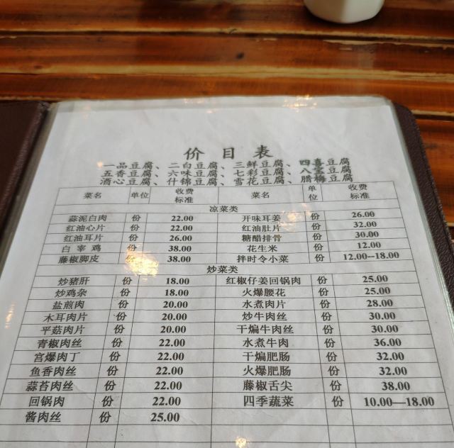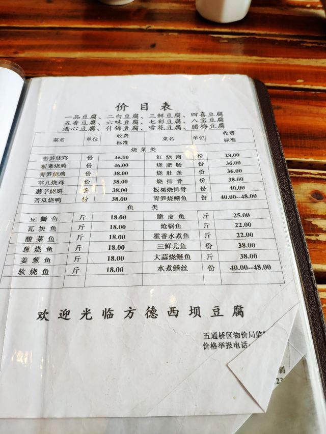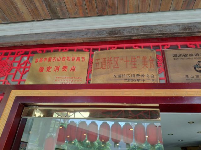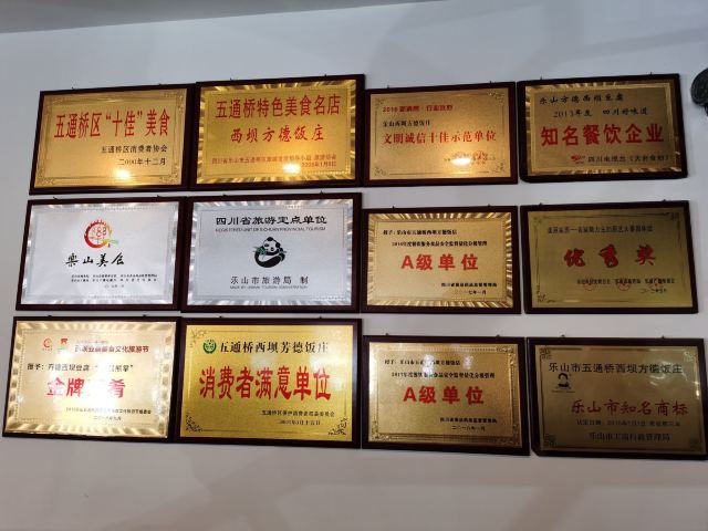 Fangdexibadoufu对于西坝豆腐的最初记忆,源自九十年代的儿时,第一次到乐山!父亲带我来西坝吃豆腐,三十多道菜的豆腐宴,在少年心中埋下了神奇的印记,那时只记得豆腐竟然可以做成那么多不同的美味。 [薄荷]环境: 寻味二十年多前的印迹,沿途已经没有当年的印象,直到看到方德的牌匾,才找到一点儿时的回忆。古香古色的餐厅,挂满了各种奖牌和名人题词,一看就是多年经营留下来的点滴。 [服务铃]服务: 老店还是老川菜馆的服务特色,大姐风风火火的上上下下穿梭,语气火爆中带着温馨,喜欢则喜欢,不爱则有些距离。 [米饭]菜品: 点餐后,各道豆腐美食很快就上桌了,无论是咸鲜的,还是麻辣的,口味都不错,虽然有些菜品差点味道,但是豆腐菜品都是很不错的。特别是麻婆豆腐,大家都很喜欢,非常下饭吃!现在的西坝豆腐不只是当初记忆里的软嫩,麻辣鲜香的味道更加明显。 总体还是不枉专程数百公里的寻味之旅!