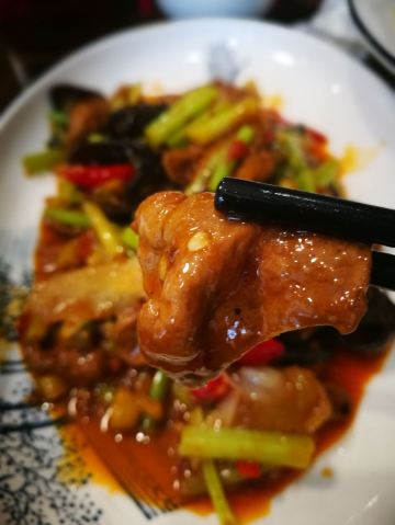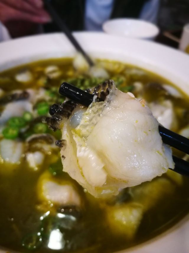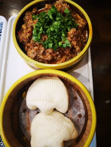 他家店不大,不过门面还是挺显眼的。点了几个菜,都还很不错,泡椒仔姜鲜牛肝味道重,下饭,偶尔吃吃补补肝。花椒鱼用的青花椒还不错,比较爽口,鱼片没有刺吃起来也赶口。做成小熊猫模样的奶黄包太可爱了,上来热乎乎的趁热,可以当主食吃。