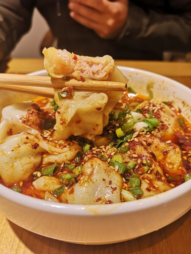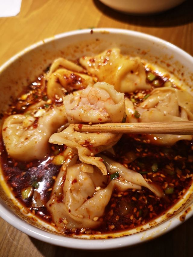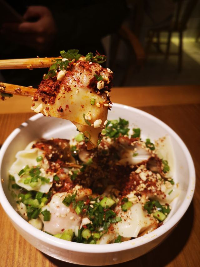 算是慕名而来,听说是一家网红店,所以在成都的时候,当地的朋友带过来尝试的。抄手,就是我们杭州人俗称的馄饨,只不过,这个馄饨的吃法类似是干捞的,拌上麻辣酱,就是一道当地人喜欢的美食。当然,入乡随俗,来成都,必须来点辣!