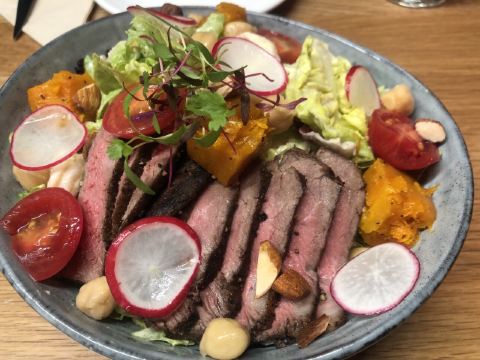 单位加班,和同事相约来吃轻食。 北欧素食三明治,面包底脆脆的,面包上有鸡蛋、有番茄、有蓝莓。 重口味士林烤肠,烤肠很香,我觉得比台湾士林烤肠好吃的多。 牛肉鲜虾谷物沙拉,内容很丰富,南瓜鹰嘴豆番茄藜麦,低温烤制牛肉,晚上吃了没啥负担。 吃完后,和同事散步走过双子塔,夜幕下的双塔静谧但有散发着迷人的光芒。 加班很苦,只能苦中找乐。