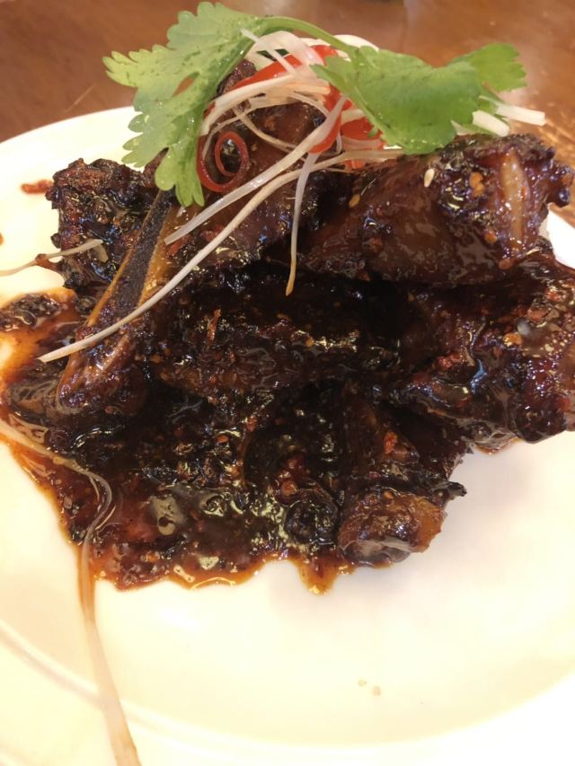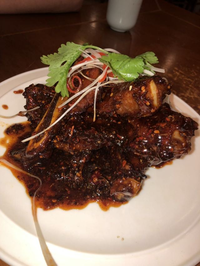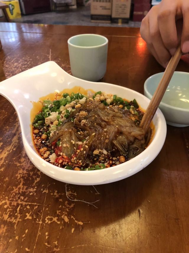 这家不走寻常路的老板另辟蹊径来个酸菜鸡。整体装修比较中式和红艳,酸菜是四川人自豪和喜欢的口味之一,炖鸡加老酸菜,还有土著们喜欢的芋儿脑壳,炖得溜耙,吃完后还可以加豆花、竹笋之类涮,实惠价不贵,还有些配菜点缀,我觉得有前途。