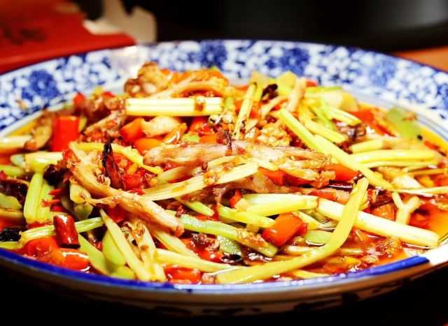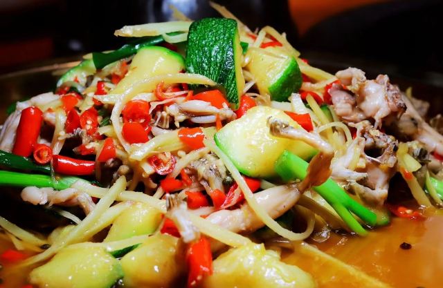 只有几铲铲江湖菜才适合喝酒聊天,在四川人生活习惯里,麻辣下白酒最适合。 这家店开了很多年,主要就是宜宾菜,和自贡菜有相似之处,子姜的鲜辣最为突出,爆炒猪鼻筋、南瓜烧茄猫儿、火爆蛙肚这一类就正好,香辣鸡翅最为下酒。