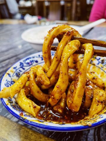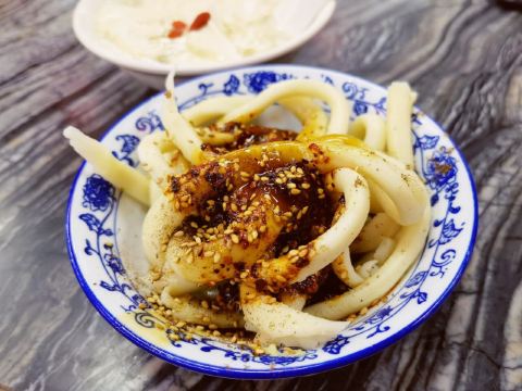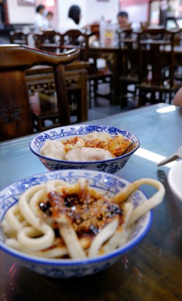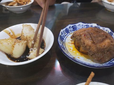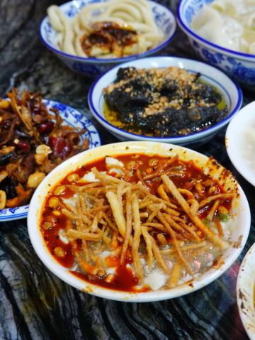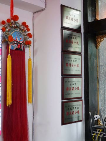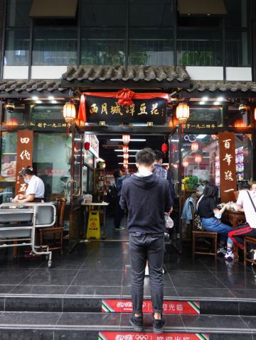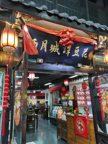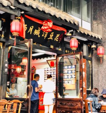 XI YUE CHENG TAN DOU HUA从春熙路溜达过来吃西月城谭豆花,古色古香的环境,小吃选择很多,感觉可以多吃几次! 甜水面,为了这口甜水面,酱料很多拌开之后就很有食欲,甜甜的麻酱很香,带点微辣,真的很好吃呀! 冰醉豆花,冰冰凉凉,搭配甜水面就很赞! 白汤抄手,朋友不吃辣,所以抄手选了白汤,鸡汤底也挺鲜美的,抄手很大个!